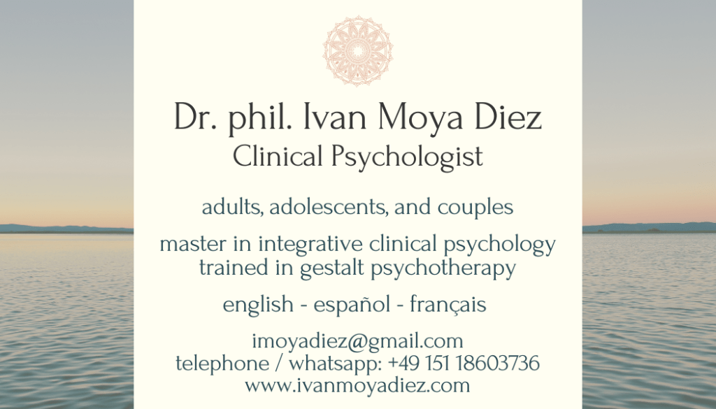 Currently, I’m based in northern Germany, and I provide online counseling services in English, Spanish, and French to adults, teenagers, and couples from different parts of the world, each with unique cultural backgrounds, histories, and life experiences.